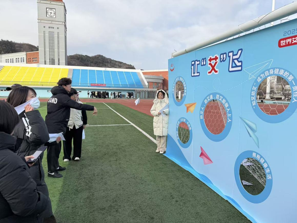 为响应“凝聚社会力量 合力共抗艾滋”的世界艾滋病日活动主题,创新艾滋病防治宣传教育形式,提升大学生自我保护意识与健康素养,学校大学生红丝带协会党支部指导社联大学生红丝带协会和青春健康同伴社于2025年11月30日在山下操场举办了防艾主题趣味活动。活动吸引了近千名学生积极参与,大学生红丝带协会党支部书记刘绍晨,协会指导教师李娟和次云哲,高教室李冬雪和刘潇咛老师出席了本次活动。 本次活动在操场设置了六个互动游戏站点,“防艾大富翁”将艾滋病传播途径与预防知识巧妙融入掷骰闯关环节;“让‘艾’飞”通过趣味投掷游戏,生动展示安全防护的重要性;“跨越危险地带”采用摸石头过河的形式模拟风险规避过程;“四平八稳”通过平衡挑战寓意行为选择的谨慎与稳妥;知识问答环节则以快问快答巩固学习成果;“寻‘机’头”则引导学生正确识别并利用身边的健康支持资源。活动现场,同学们踊跃参与、积极互动,在轻松愉悦的氛围中不仅掌握了实用的防艾知识,更在团队协作中深化了对健康责任的理解。 本次趣味活动将健康知识融入校园文化场景,通过游戏化、互动化的传播方式,让防艾宣传变得有温度、有共鸣,不仅为校园健康文化建设注入了青春活力与创新思维,更有力推动了“人人关注健康、人人参与防艾”良好校园氛围的形成,筑牢校园防艾阵线。 | ||||||||